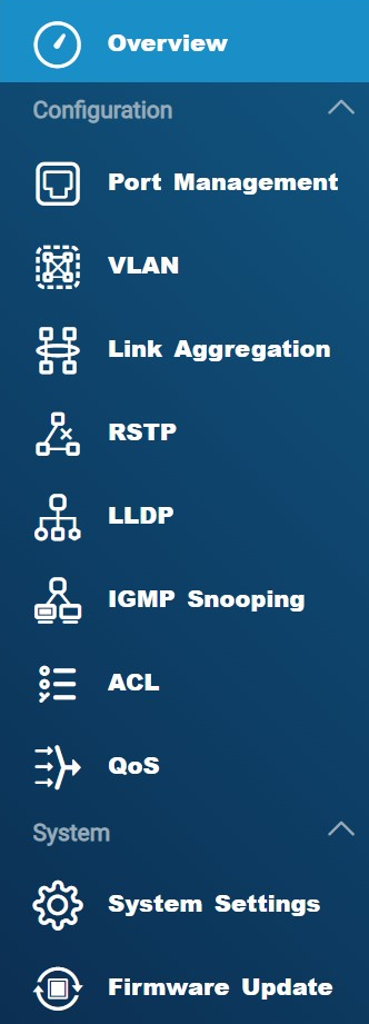 Blot et enkelt blik på listen med ni menupunkter fortæller en switch-kyndig, at her er der masser af potentiale til kontrol, fintrimning og sikkerhedsoptimering af et kablet netværk.