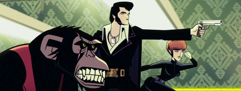 Ved sin side har Agent Elvis assistenten Bobby Ray (Johnny Knoxville) samt chimpansen Scatter (Tom Kenny), der har en fortid hos NASA, men som nu sejler cigarrygende rundt i en rus af vold, prostituerede, kokain og kokain.