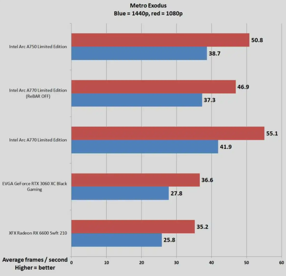 I ’First Person Shooter’-spillet Metro Exodus etablerer Intel en klar dominans ved ikke bare at være det eneste kort, der giver nogenlunde spilbar ydelse.