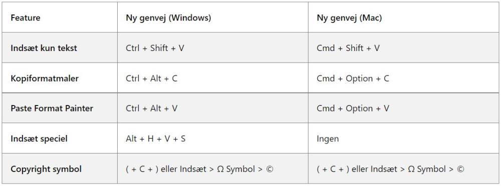 Word vil nemlig snart understøtte genvejen Ctrl+Shift+V på Windows enheder og Cmd+Shift+V på Mac til indsættelse af tekst uden fremmed formatering.
