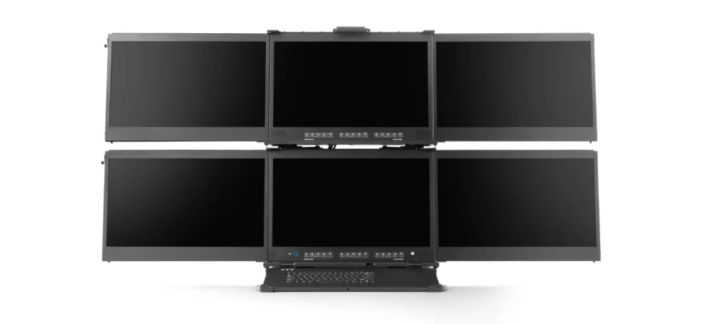 Det hele akkompagneres af en modulær skærmanordning, som kan skalere fra en 24 tomer 4K skærm helt op til seks af slagsen, som kan klappes ud i en tre gange to vifte. Sammenlagt giver de samme skærmareal og opløsning som en 60 tommers 12K skærm.