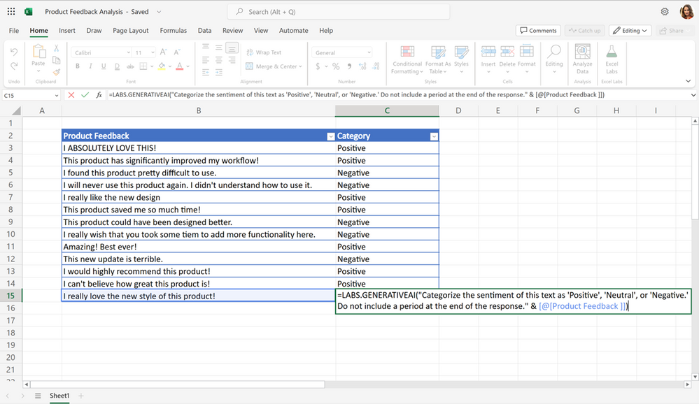 Denne funktion giver muligheder for at sende prompts fra Excel-gitteret til en generativ AI-model og derefter returnere resultaterne fra modellen tilbage til dit regneark. Dette er ikke en del af Microsoft365 Copilot.