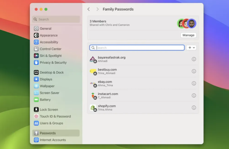 I MacOS Sonoma vil du kunne skabe en gruppe af brugere med adgang til dine delte passwords, hvorefter alle brugere kan tilgå de tjenester, hjemmesider eller apps som benytter de delte passwords. Disse brugere kan også