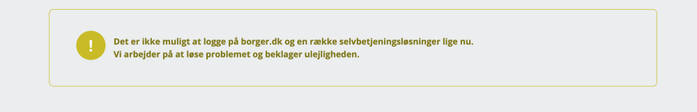 "Det er ikke muligt at logge på borger.dk og en række selvbetjeningsløsninger lige nu. Vi arbejder på at løse problemet og beklager ulejligheden."
