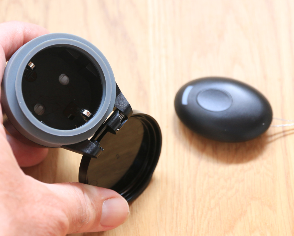 Den lille stikprop håndterer blot et enkelt apparat og genial, når jeg på vej hjem fra job vil tænde for espressomaskinen, så den er klar, når jeg lander på matriklen.