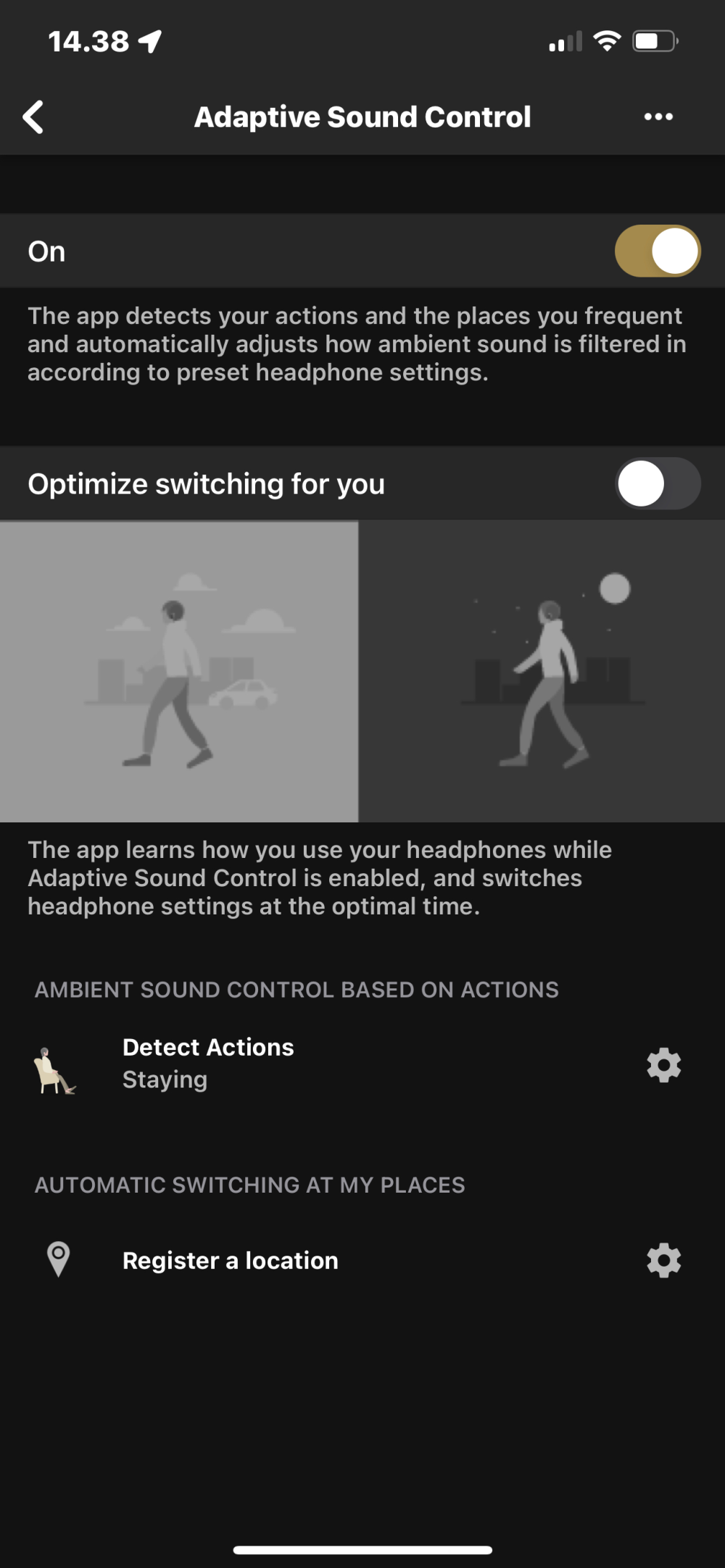 Men app’en kan også detektere om du bevæger dig, hvor du bevæger dig hen, i hvilke omgivelser du befinder dig i og indstille anti-støj funktionen ud fra det.
