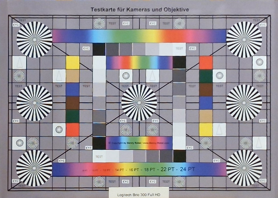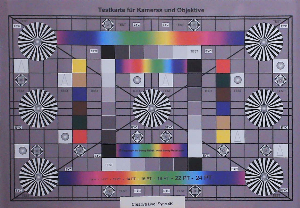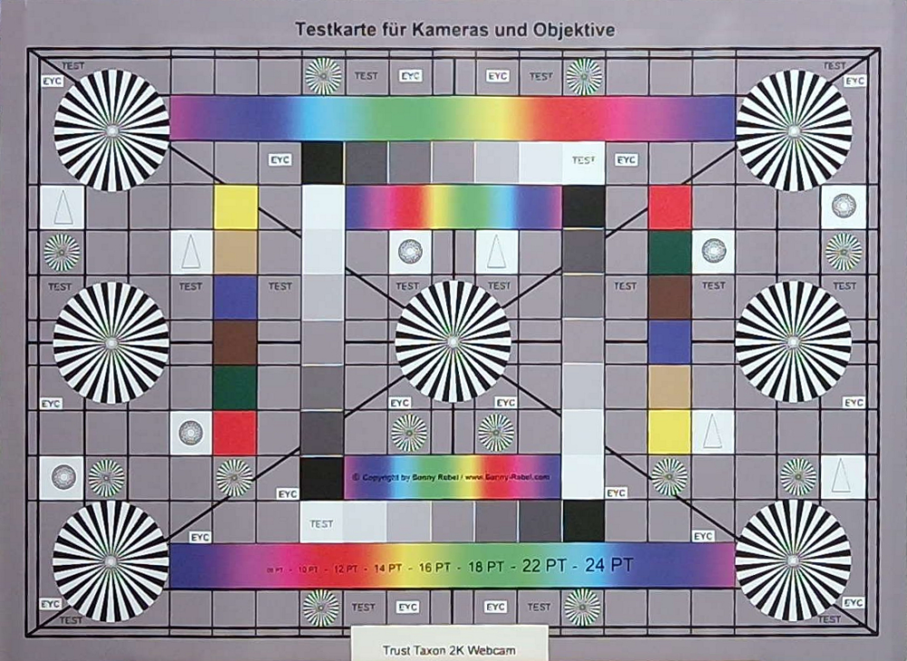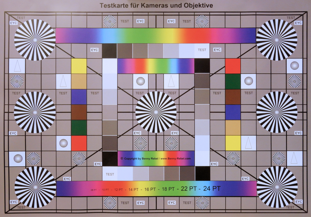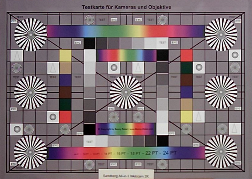 Dette testkort kan sammenlignes med et tv-prøvebillede, og det kan afsløre skarphed, farvefejl og fortegning, så det bliver nemt at sammenligne forskellige modeller.