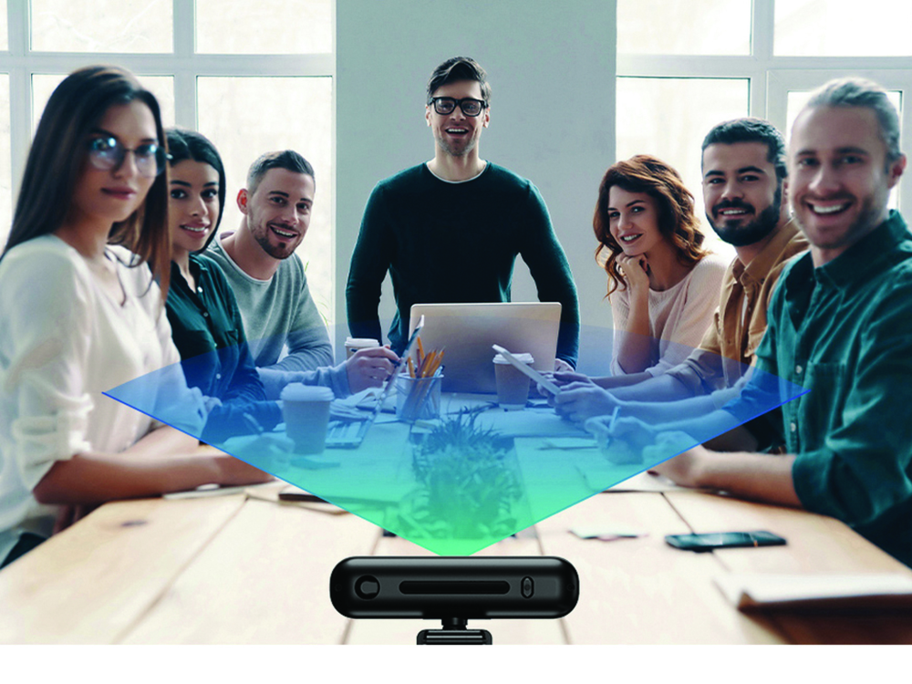 Du vil kunne nyde godt af en klar lyd fra den indbyggede højttaler, og din modpart får din – og andre deltageres – stemme leveret med minimal påvirkning af støj og rum. Billedsensorens 2K-opløsning udnyttes ikke fuldt ud af objektivet og/eller billedbehandlingen.