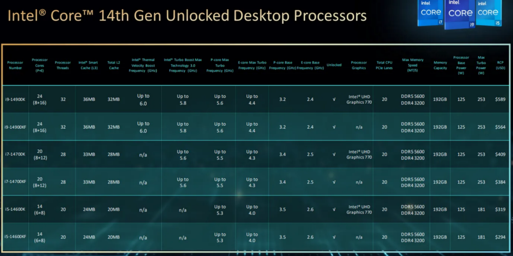 De officielle priser starter ved 589 amerikanske dollar for topmodellen, mens Core i7-14700K og Core i5-14600K får listepriser på henholdsvis 409 og 319 amerikanske dollar.