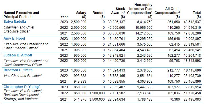 Se overblikket over Microsoft-ledelsens kompensation nedenfor: