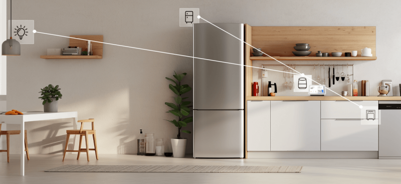 Hvis dit udstyr ellers understøtter det, kan du nu styre klimaanlæg, ventilatorer, luftrensere, køleskabe, vinkøleskabe, opvaskemaskiner, vaskemaskiner, tørretumblere og robotstøvsugere samt sikkerhedssystemer som CO2- og røgdetektorer.