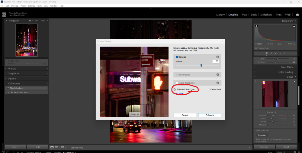 Men det var før 2023 og AI-værktøjernes eksplosion. Og før Adobe indførte et AI-baseret værktøj, som på snedig vis kan fjerne billedstøj i fotos eller digitalt forstørre små fotos uden tab af kvalitet.