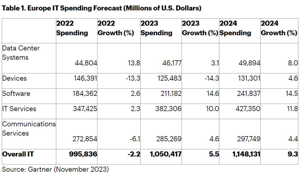 Gartner forudser, at it-udgifterne i Europa vil stige med 9,3 procent i 2024.