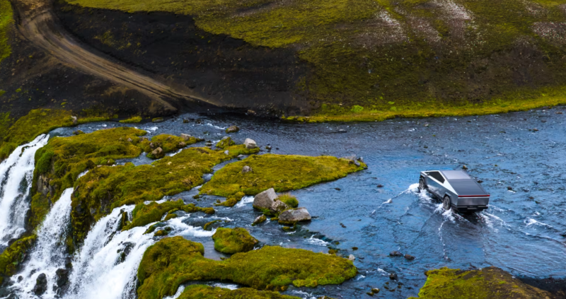 Elon Musk forsikrer dog at bilen er ’så godt som sikker mod stenslag’.'