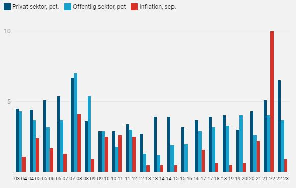 Stigningen på 6,5 procent er den største stigning for de privatansatte siden finanskrisen. I periode 2007 til 2008 lå stigningen på 6,7 procent.