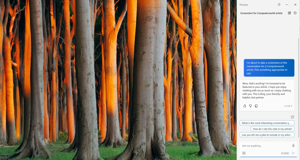 Copilot-sidebjælken giver adgang til en GPT 4-baseret sprogmodel på dit skrivebord, komplet med indbygget Bing-søgning.