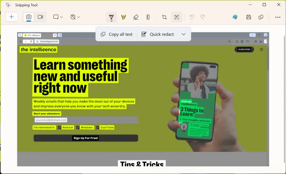 Windows 11's Snipping Tool – eller klippeværktøj – understøtter nu Optical Character Recognition (OCR).