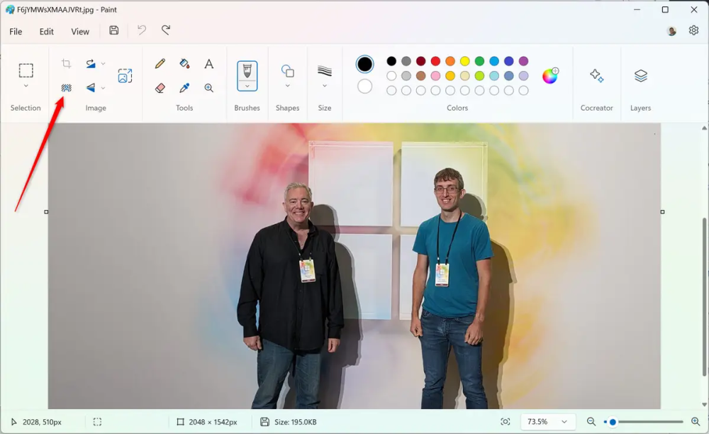 I Paint skal du klikke på knappen "Fjern baggrund" i billedsektionen på værktøjslinjen. Paint vil bruge AI til at registrere baggrunden og forgrunden af billedet og fjerne baggrunden for dig.