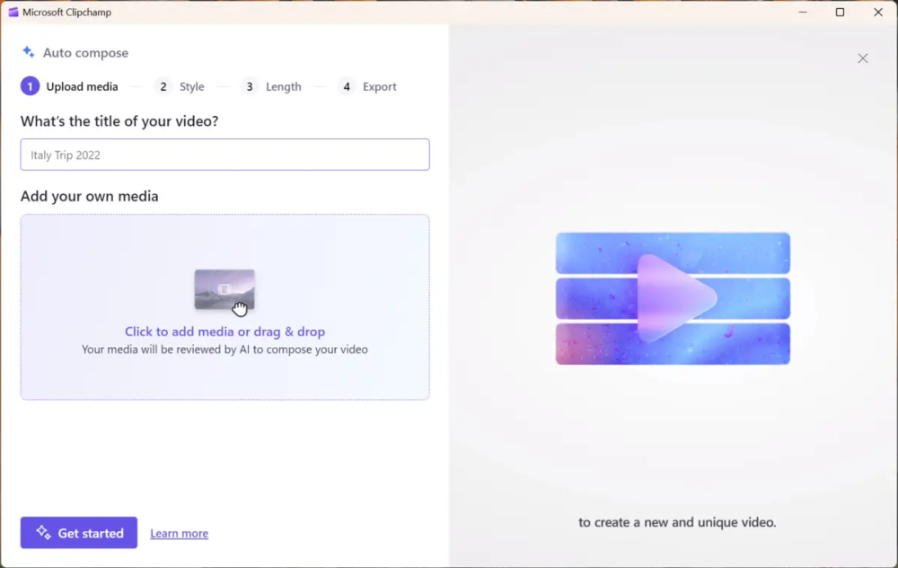 Specifikt siger Microsoft, at Clipchamp vil bruge sin "smarte AI-model" til at skabe "en professionelt designet video automatisk."