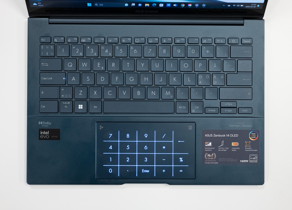 Samtidig gøres bedriften uden at suge mere ud af batteriet end forrige generationer. Når Asus samtidig inkluderer et stort 75 Wh-batteri om bord er man sikrer en hel kontordags drift væk fra stikkontakten. Mere end godkendt.