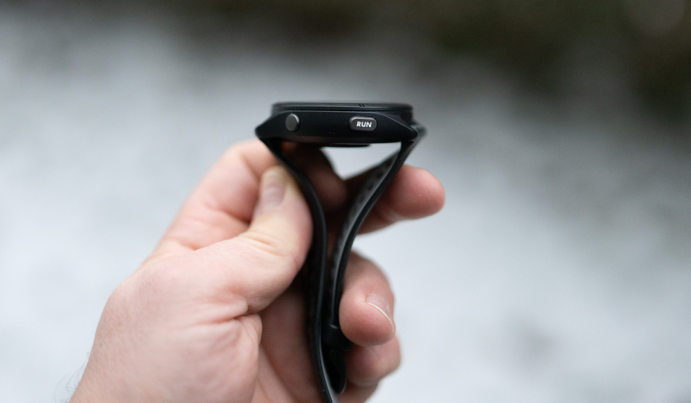 Det du også får, er fem knapper til at styre uret mod beskedne to eller tre i typiske smartwatches, hvilket pludseligt giver utrolig meget mening, når der skal opereres med handsker her i vinterkulden.