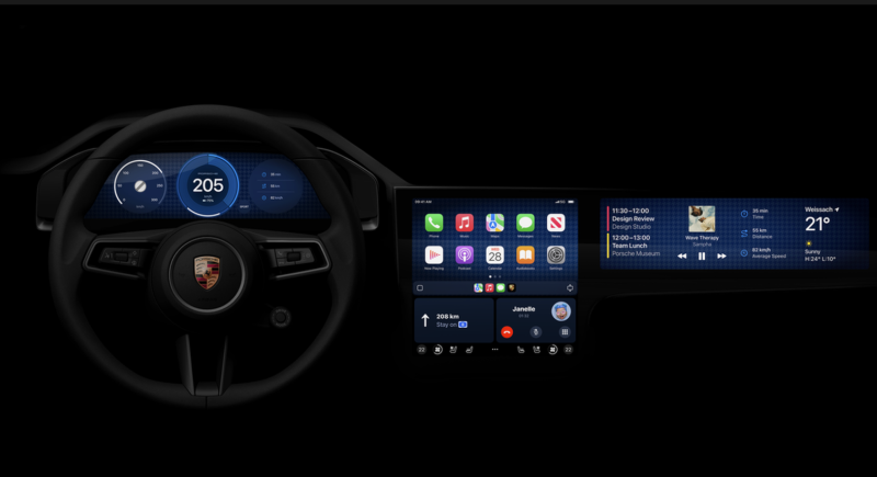 Mens Apple endnu ikke har offentliggjort det endelige reviderede CarPlay, giver Porsche allerede indikationer af, hvad systemet vil hedde, ved under lanceringen af sin reviderede Taycan-elbil at omtale systemet som 'Apple CarPlay Plus’.