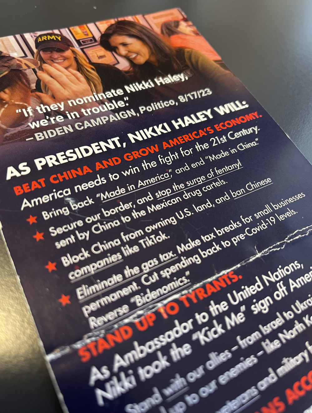 Det var budskabet fra republikaneren Nikki Haleys valgmaskine, da jeg for et par uger siden deltog i et af hendes valgmøder i Conway, South Carolina.