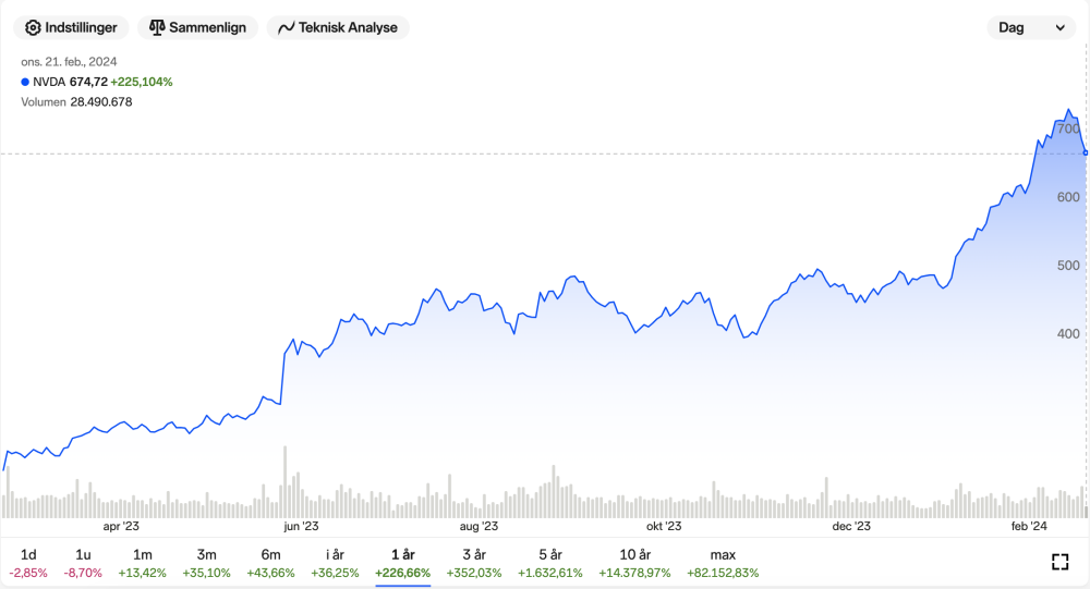 Alene i fjerede kvartal 2023 omsatte Nvidia for 152 milliarder kroner. Det svarer til en vækst på 265 procent sammenlignet med samme kvartal i 2022.