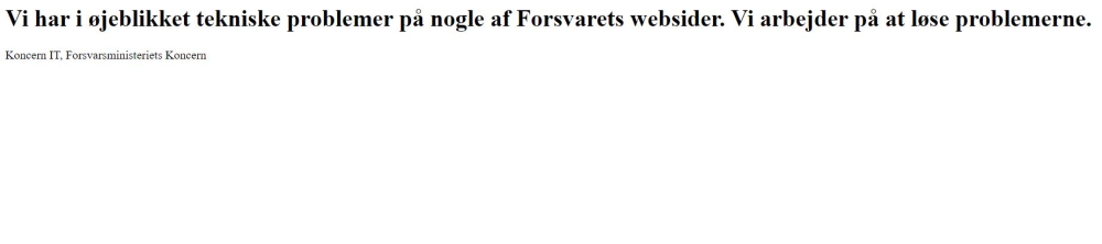”Vi har i øjeblikket tekniske problemer på nogle af Forsvarets websider. Vi arbejder på at løse problemerne.”
