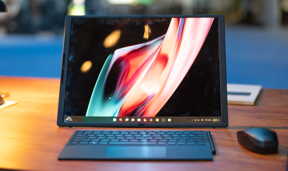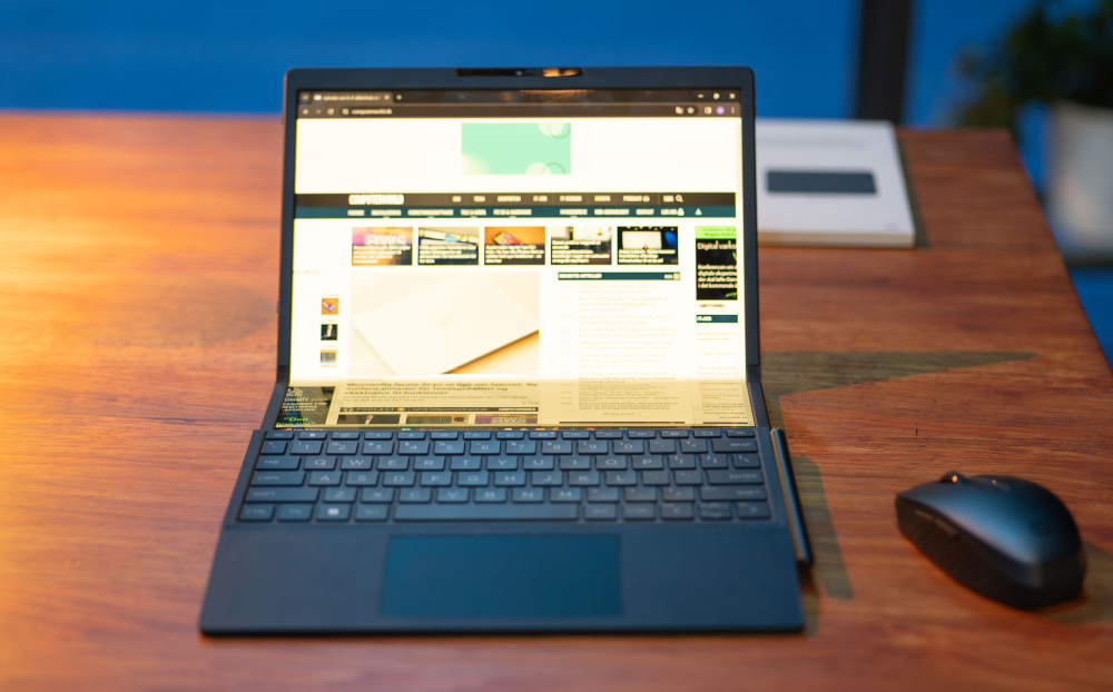 På en bærbar computer er disse udfordringer dog mindre til hinder. I Spectre Foldable er selve folden ikke skarpt trukken som i en foldemobil, da den levner plads til et snedigt tastatur mellem de fladerne.