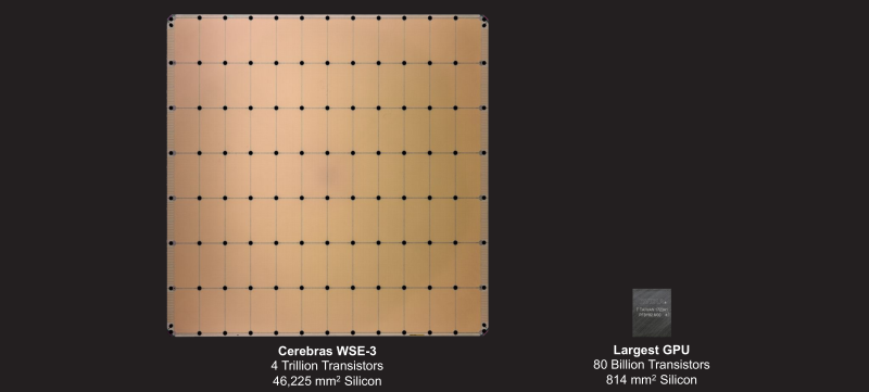 Det gør det muligt for CS-3 processoren at huse intet mindre end 4.000 milliarder transistorer, mod H100’s 80 milliarder.