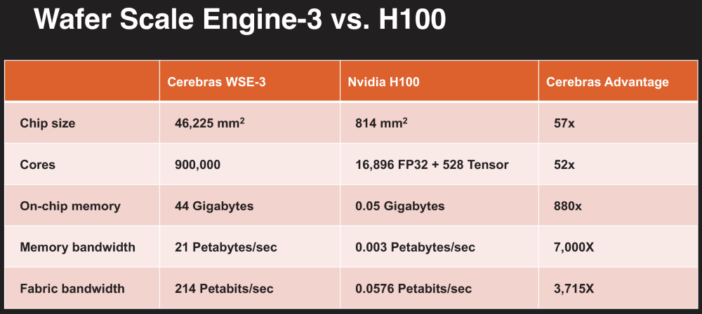 Resultatet er en processor, som er størrelsesordner større end konkurrenterne, med et samlet areal på 46.225 kvadratmillimeter – 57 gange større end Nvidias i forvejen mægtige H100-chip.
