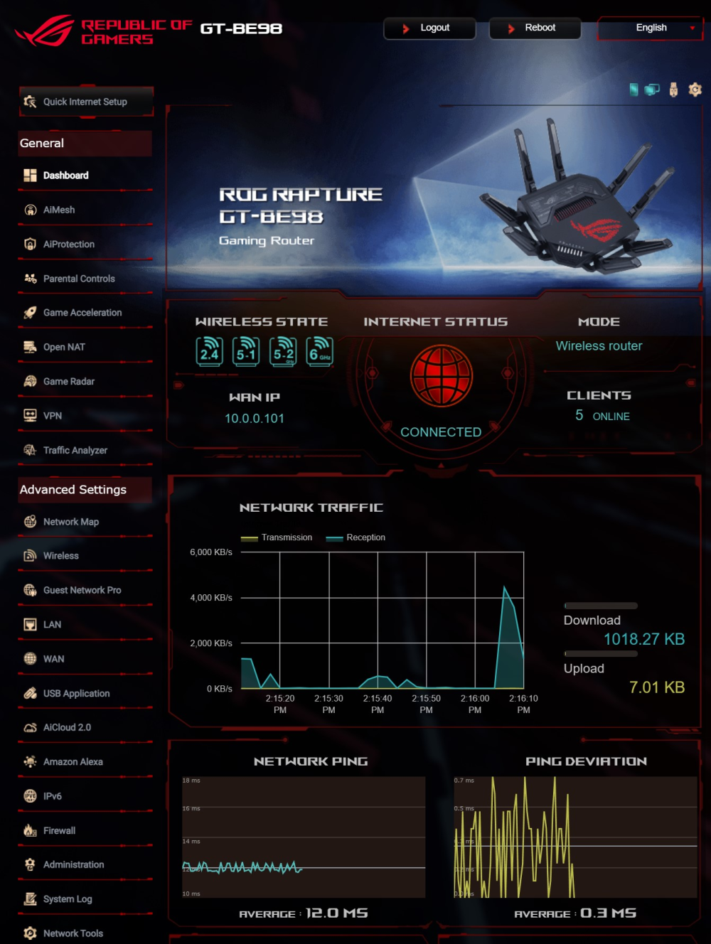 GT-BE98 kan tilgås via en app, som hedder ASUS Router, men jeg finder det nemmere at overskue cockpittet på en stor computerskærm.