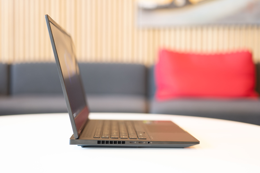 Her er der eksempelvis standset nogle diskrete små mønstre i det sorte aluminiumskabinet, der indikerer, at maskinen gemmer på flere kræfter end en almindelig laptop.