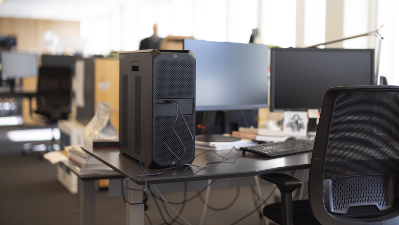 Her har desktopmaskinens 96 CPU-kerner fra Threadripper Pro 7995WX-processoren, hele 512 gigabyte RAM og to Nvidia RTX 6000 Ada-grafikkort med hver 48 gigabyte RAM så stået gjort sit for at holde Computerworlds store kontor lunt midt i det omskiftelige forårsvejr.