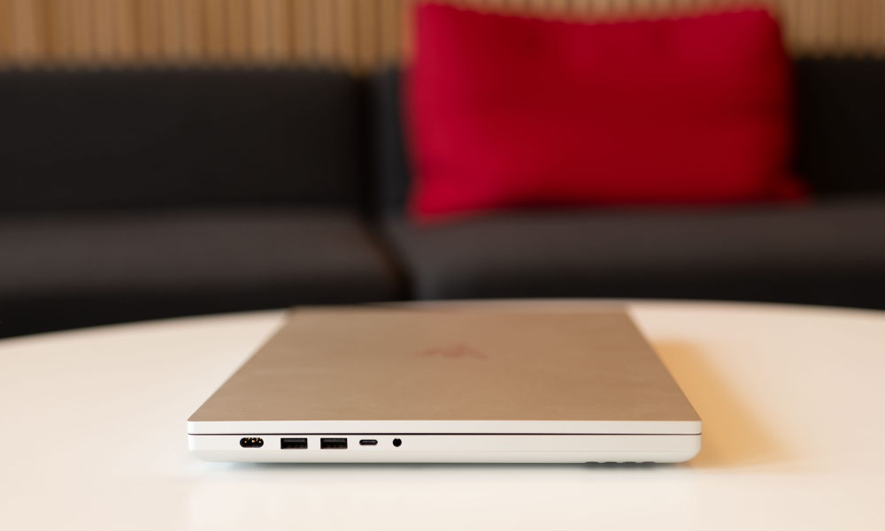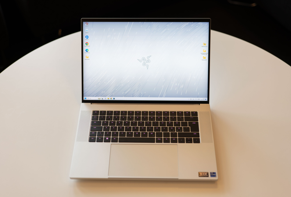 Her i modellen med 16” skærm, kunne man nærmest smide et hvidt Apple-klistermærke over Razer-logoet og snøre de fleste til at tro, at her er tale om en Macbook.