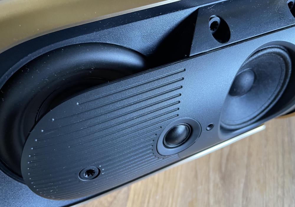 Det hele styres af indbyggede digitale kredsløb og forstærkere bag en stor køleplade på bagsiden, der sikrer, at varmen fra de tre klasse-D forstærkere ledes væk.