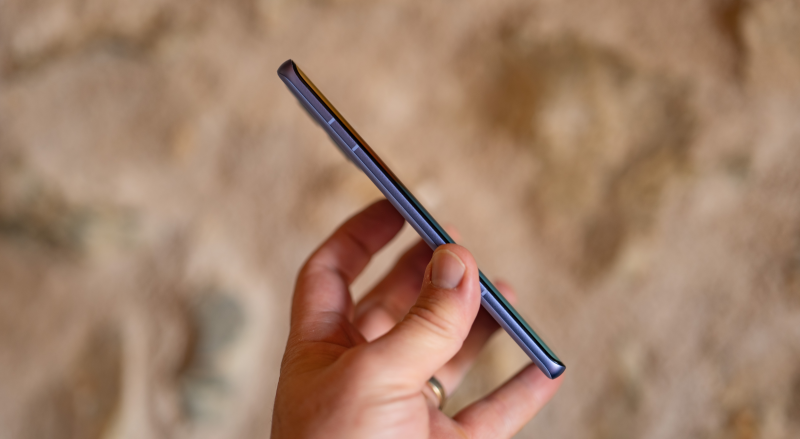 Selve skærmen buer ned med siderne, hvilket er en design-detalje, som de førende mobilproducenter Apple og Samsung er gået bort fra.
