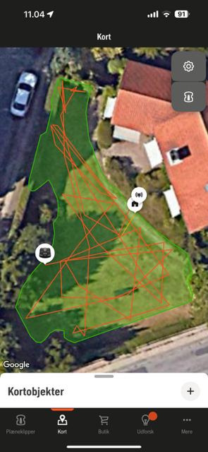 Om kantklipperen også blot behøver oplæring, kan vi ikke vurdere. Hos os har den ikke været god nok til at vurdere, om robotten kører på græs eller noget andet, for eksempel en brolagt sti.