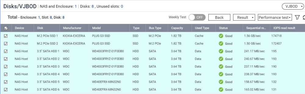 TVS-h674T’s egen testfunktion viser, at NAS’en lever op til forventningerne.