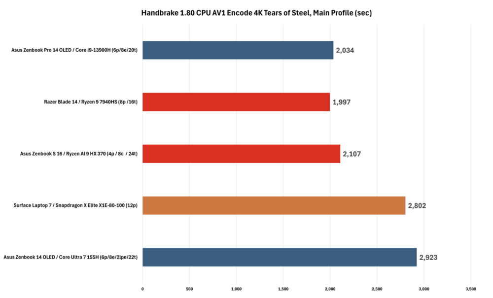 Når det kommer til video-kodning med et program som Handbrake er AI 9 HX med blandt de tre første, om end den bliver overhalet med et mulehår