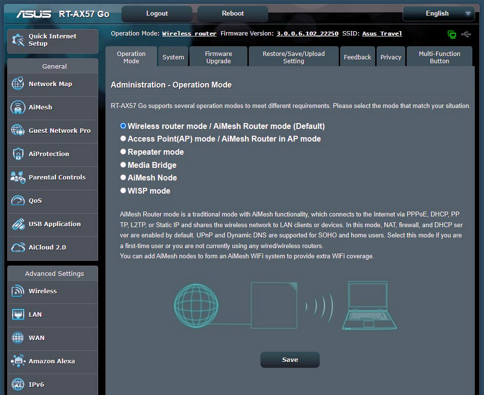 Både hjemme og ude kan denne Travel Router bruges som enhver anden router. Tilslut et standard internetkabel og det medfølgende strømstik, foretag en grundlæggende opsætning i ASUS Router-appen, og du er i business.
