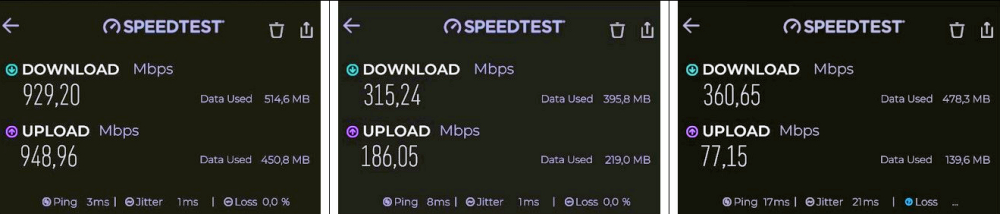 Som router har RT-AX57 Go kørt både kablet og trådløst i umiddelbar nærhed – mindre end to meter – fra min laptop med wi-fi 7-modul og 2.5GbE ethernet-adapter. Se Speedtest-målingerne herunder.