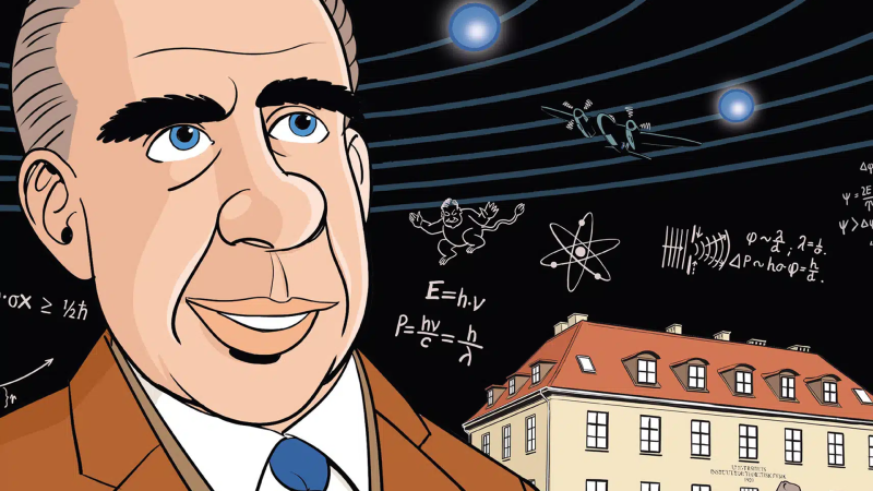 Her får verdenskendte fysikere som Schrödinger (ja, ham med katten), Heisenberg og Einstein nyt liv via deres mange besøg på Østerbro, hvor der bliver diskuteret og udvekslet ideer.