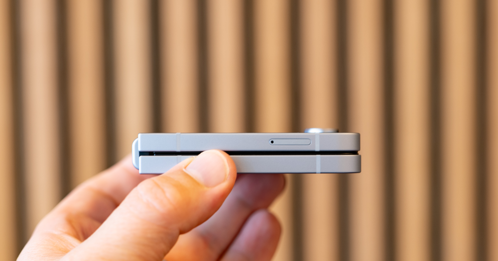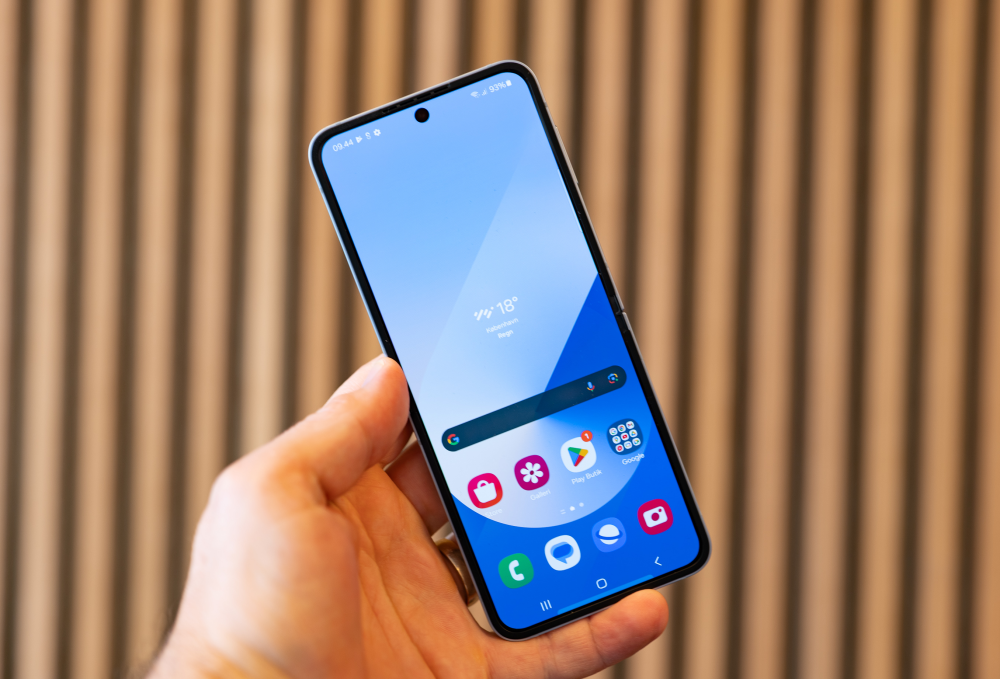 Telefonen virker samtidig mere hårdfør end den større Flip 6, givetvis fordi den også er lidt tykkere og fordi den potentielt sårbare mekanisme kun folder på den korte led.