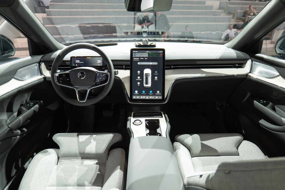 At EX90 og XC90 kigger henholdsvis ind i fremtiden og fortiden bemærker man på eksempelvis infotainment-skærmen, som i XC90 alene strækker sig over 11 tommer, mens der bydes på 14,5 tommer i EX90.