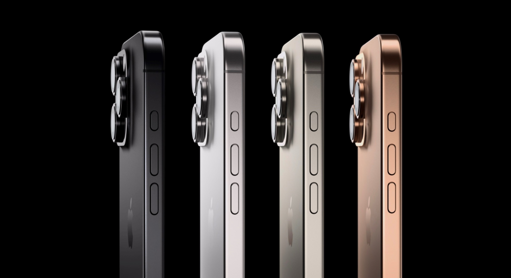 Apples Pro-telefoner er fortsat herligheder skabt i bomstærk titanium metal sort, natur, sølv – men nu også i en ny ’desert’ titanium med rødguld skær.