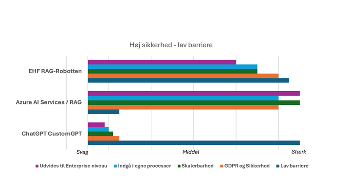 Det er utrolig nemt er at sætte en CustomGPT op på egne dokumenter, men der mangler vi sikkerhed/GDPR, skalerbarhed og evnen til at skræddersy løsningen, og indarbejde den i sine processer.
