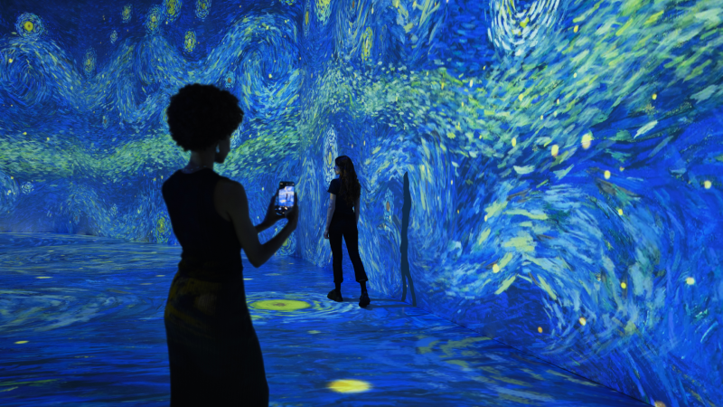 Her går besøgende ind i billedet af van Goghs Det Gule Hus og videre ind i hans berømte soveværelse, før man bevæger sig ud på ’Cafeterrasse om aftenen’ og videre ud mellem kornmarkerne, oliventræerne og ikke mindst de ikoniske stjernenætter.