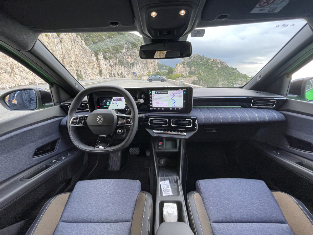 Det samme er kabinen der byder på sportsagtige sæder med lidt farvetoning foran, god støjdæmpning, klare store skærme der kører Googles auto-system, trådløs opladning af mobiltelefoner (og 2 x USB C), Apple Carplay, godt udstyr og stof eller beklædning alle de rigtigt steder. Her er vi meget langt fra en klassisk skrabet Renault Twingo.